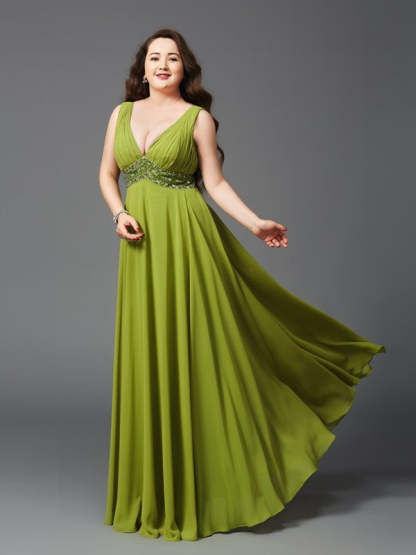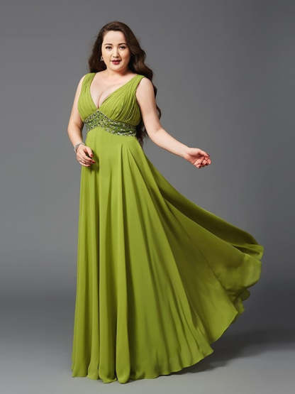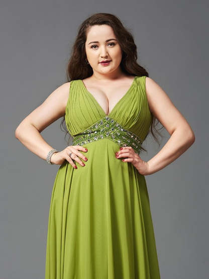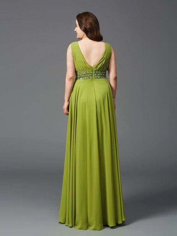 A-Line/Princess Straps Rhinestone Sleeveless Long Chiffon Plus Size Dresses
