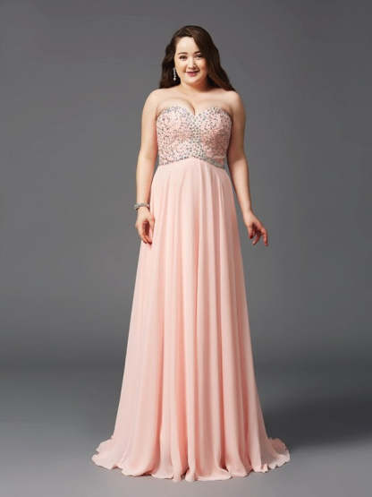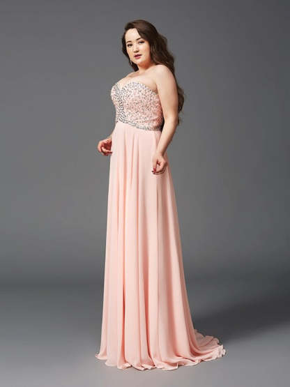 A-Line/Princess Sweetheart Beading Sleeveless Long Chiffon Plus Size DressesA-Line/Princess Sweetheart Beading Sleeveless Long Chiffon Plus Size Dresses