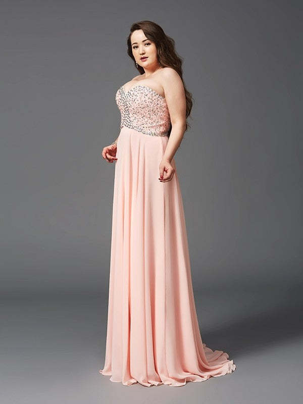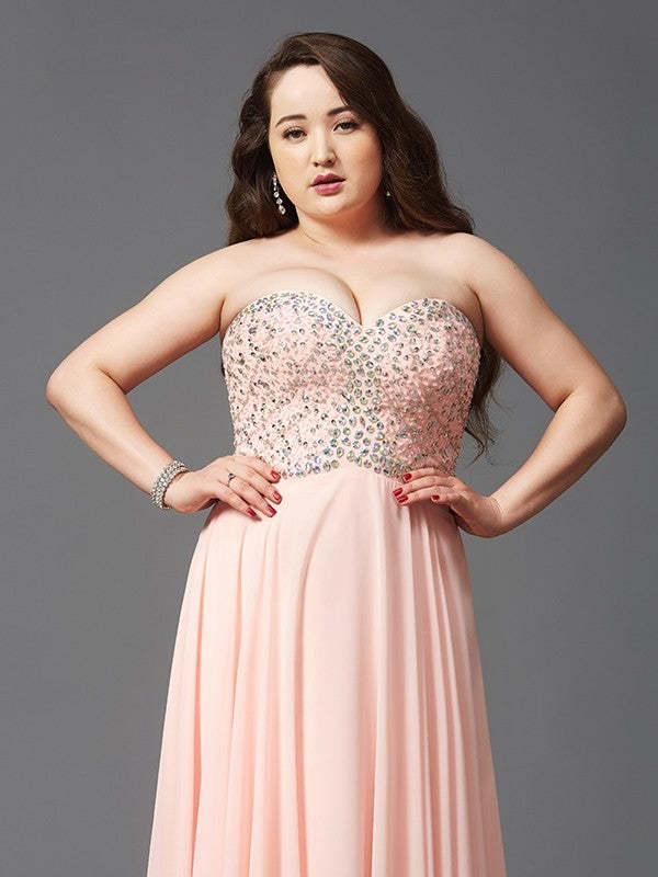 A-Line/Princess Sweetheart Beading Sleeveless Long Chiffon Plus Size Dresses