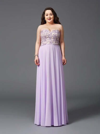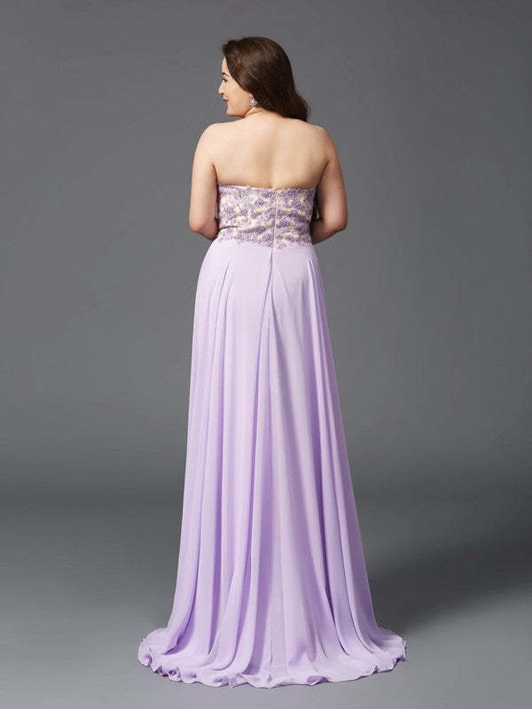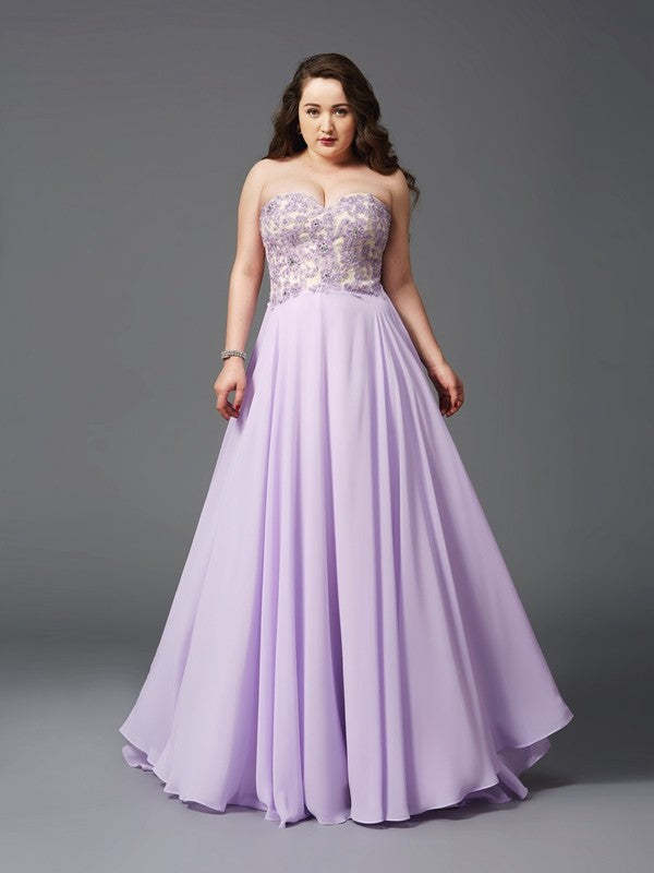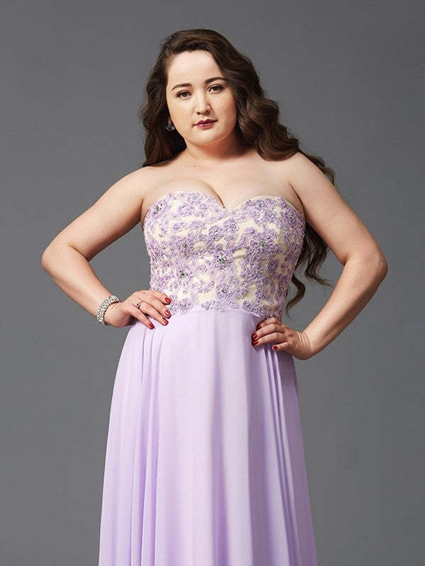 A-Line/Princess Sweetheart Lace Sleeveless Long Chiffon Plus Size Dresses