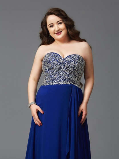 A-Line/Princess Sweetheart Rhinestone Sleeveless Long Chiffon Plus Size Dresses