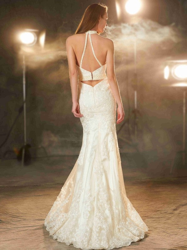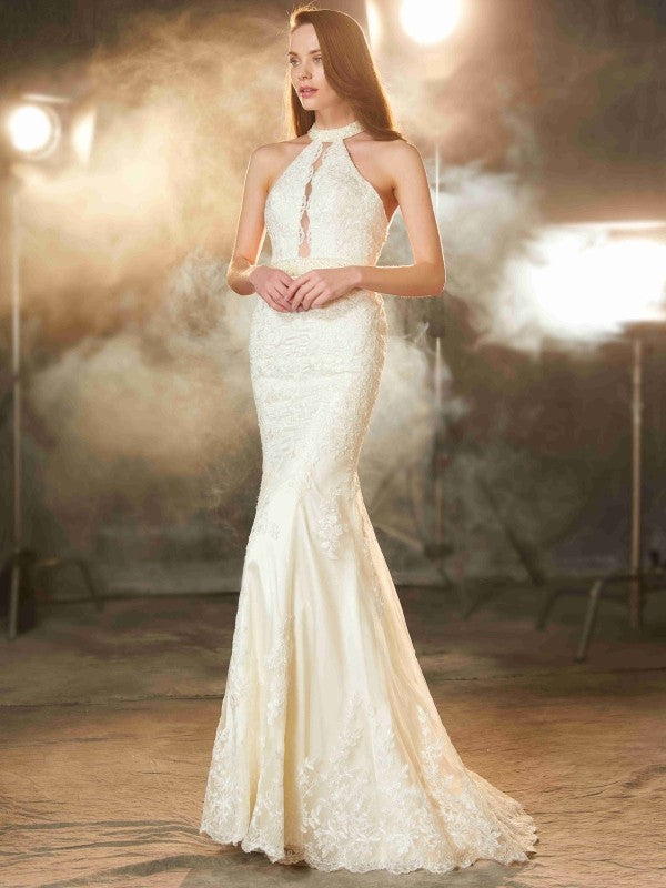 Sheath/Column Jewel Sleeveless Sweep/Brush Train Applique Woven Satin Dresses