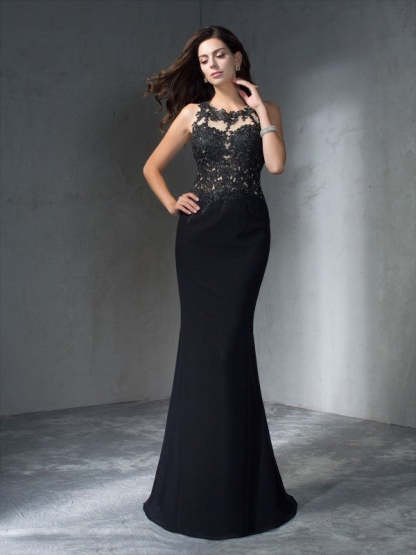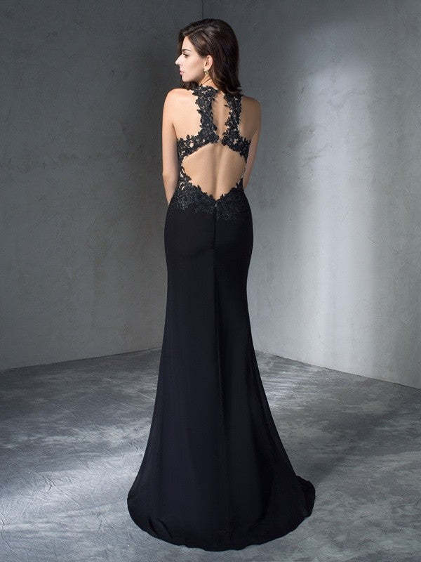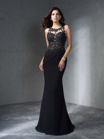 Trumpet/Mermaid Scoop Sleeveless Long Applique Chiffon Dresses